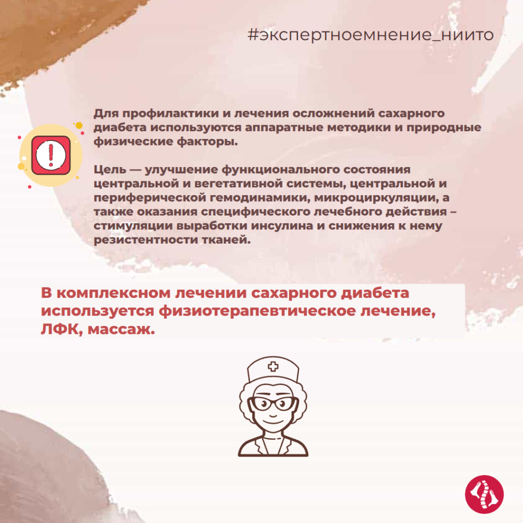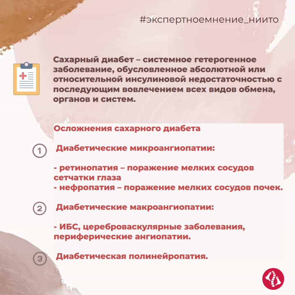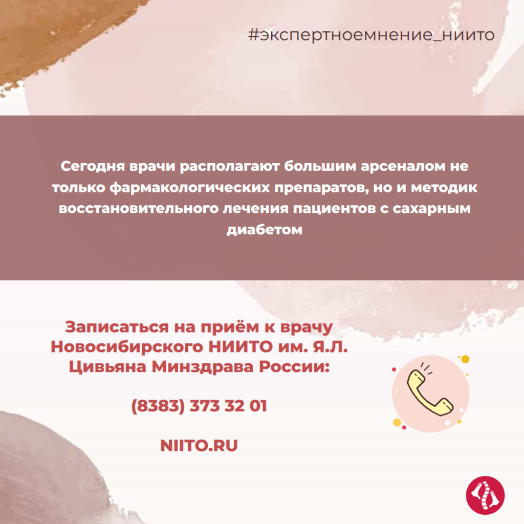 Часть наших пациентов страдают не только заболеваниями суставов, но и сопутствующими — такими как СД. Специалисты Новосибирского НИИТО им. Я.Л. Цивьяна владеют не только хирургическими методами лечения, но и современными технологиями для реабилитации.